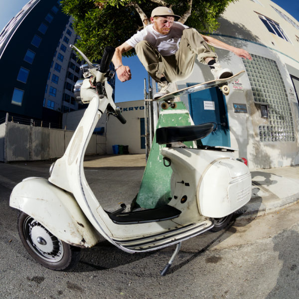 Ben Gore’s part in Zach Chamberlin’s Bright Moments video is not your average walk in the park, every trick revolves around some sort of scooter or motorcycle. I hit up Ben to get the skinny on how he managed to avoid getting beaten up and what exactly it was that he did over two Harleys.—Dave Chami